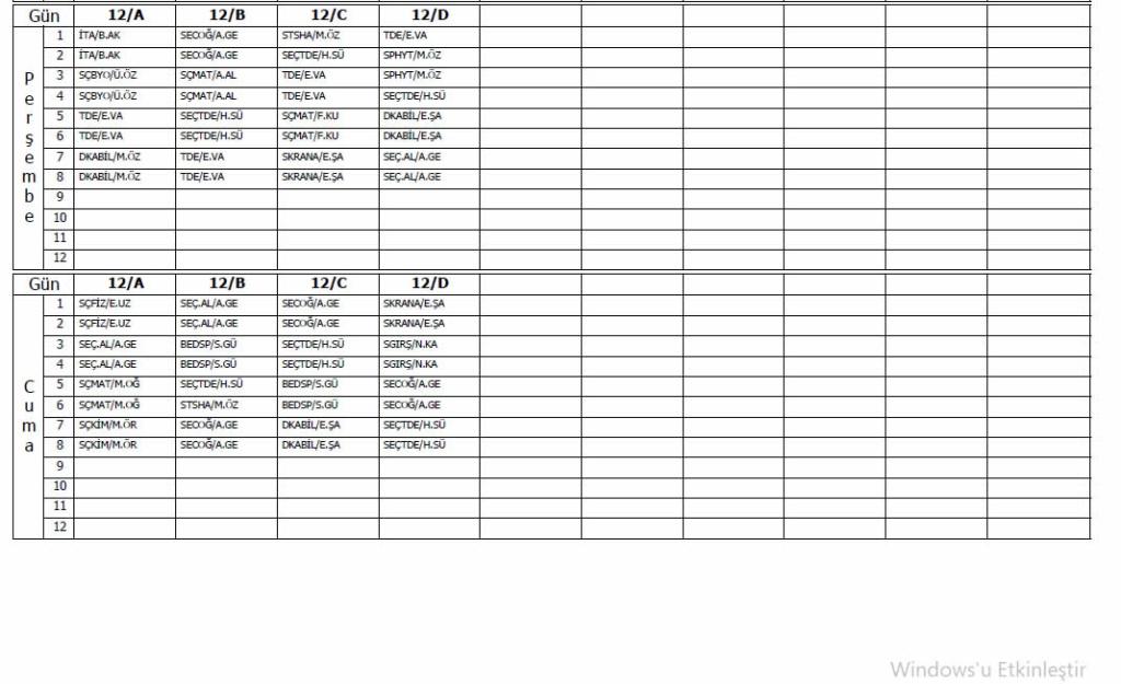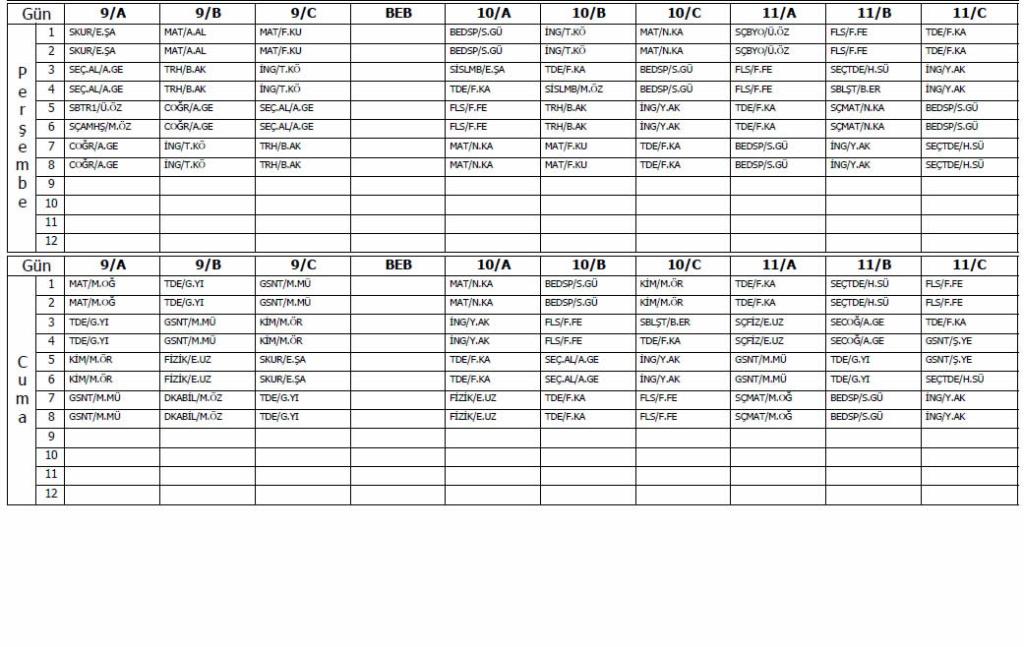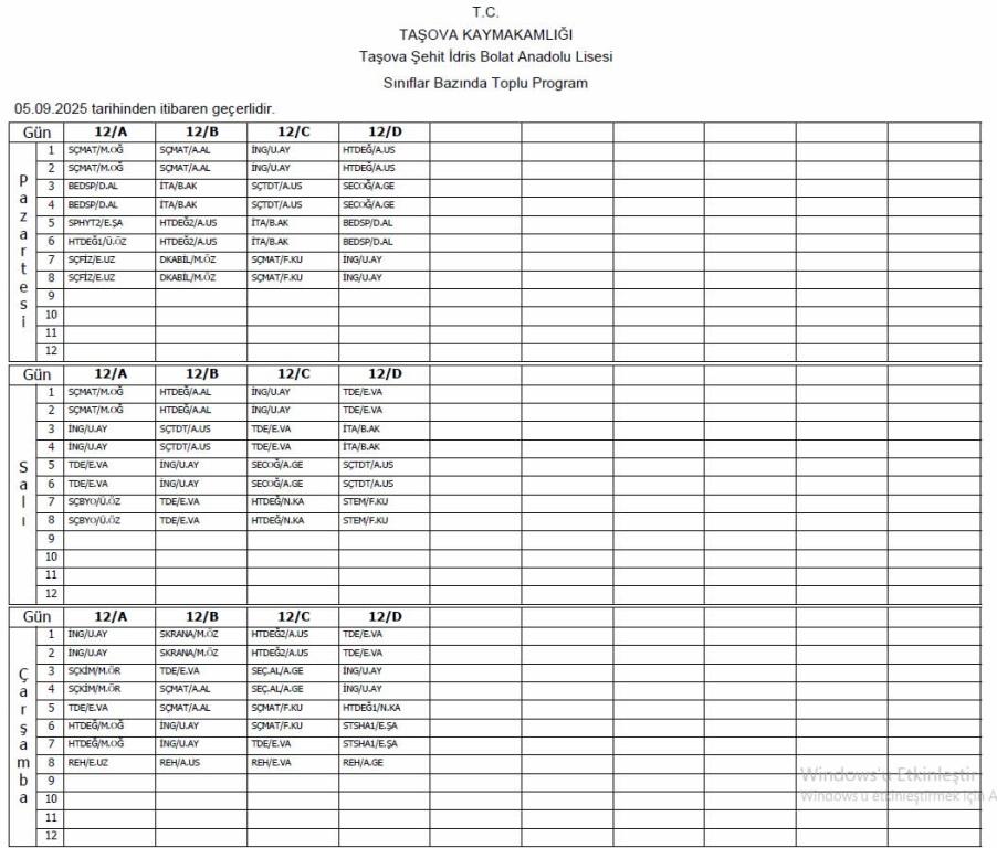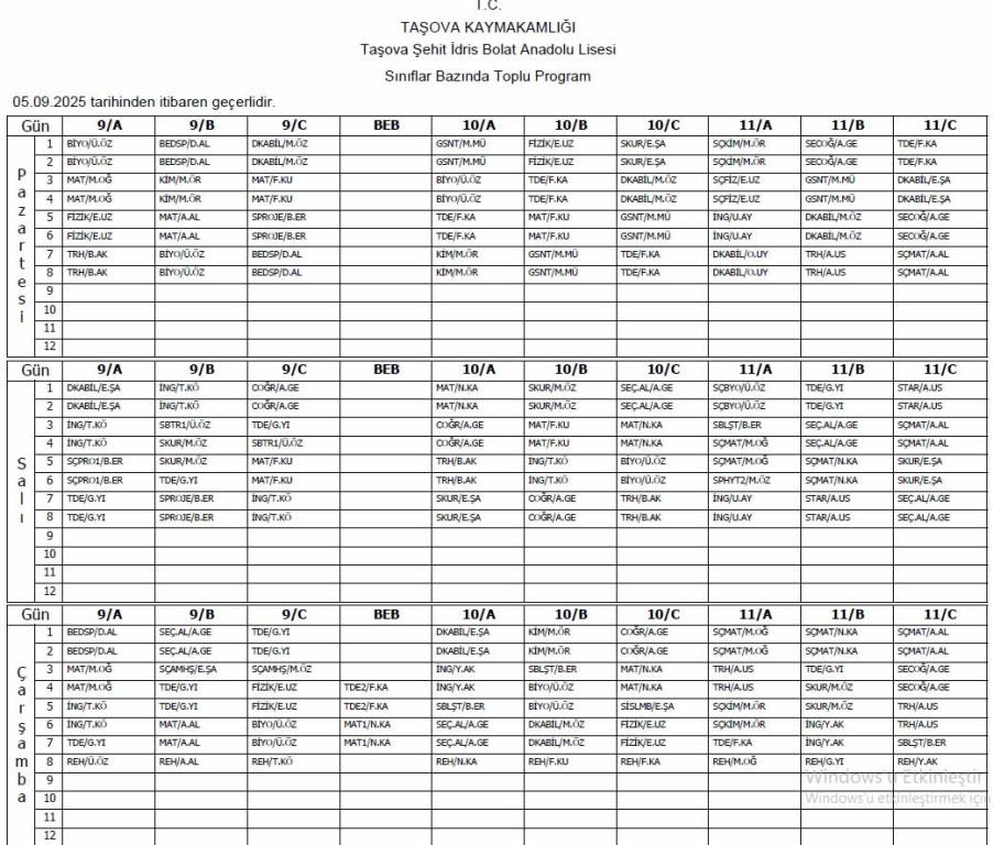 8 Eylül 2025 Tarihli Ders Programı
